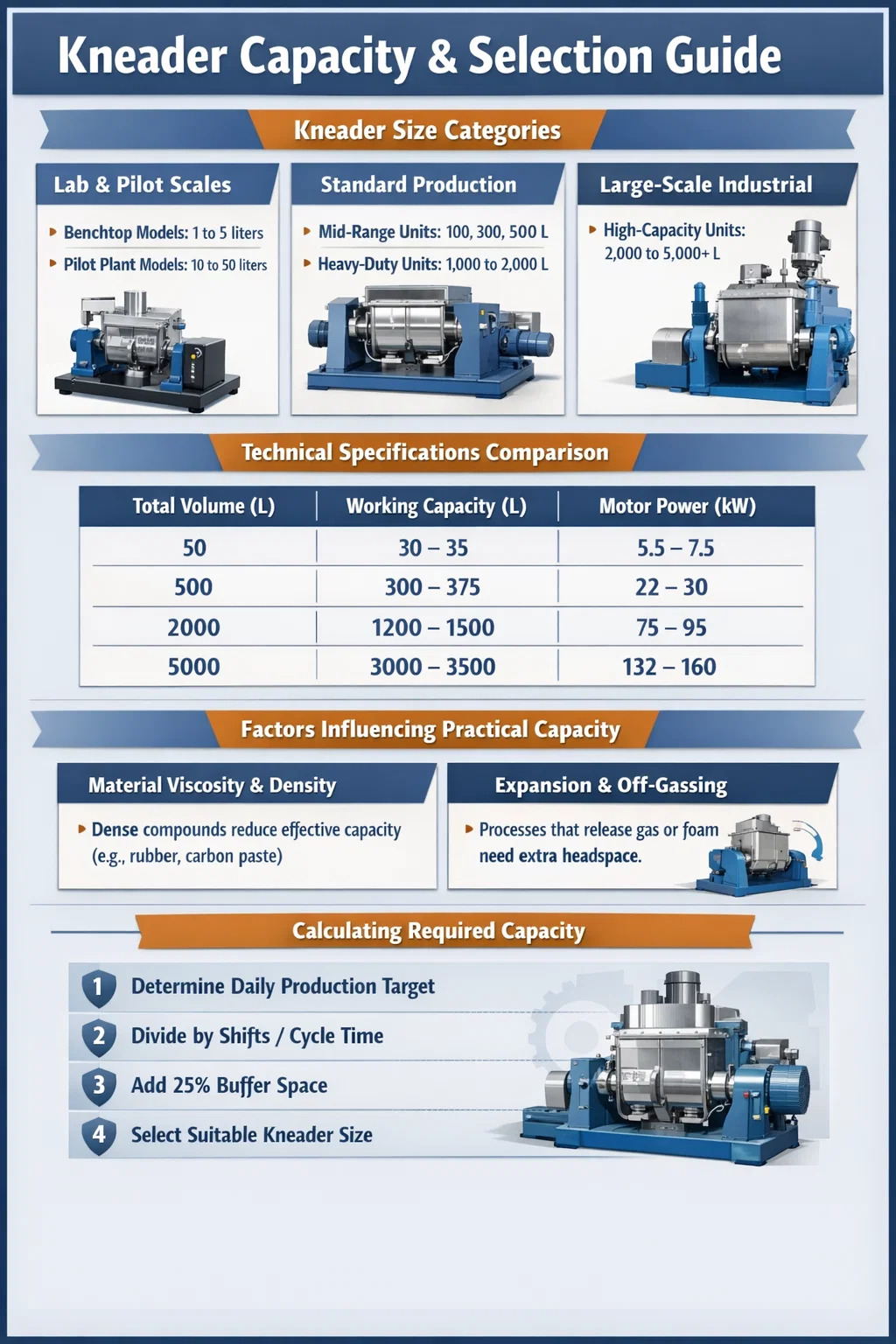 Az effektív kapacitás a gumi dagasztó vagy vegyszerkeverő nem csak a tartály méretétől függ. Számos fizikai tényező határozza meg, hogy tételenként mennyi anyagot lehet ténylegesen feldolgozni: